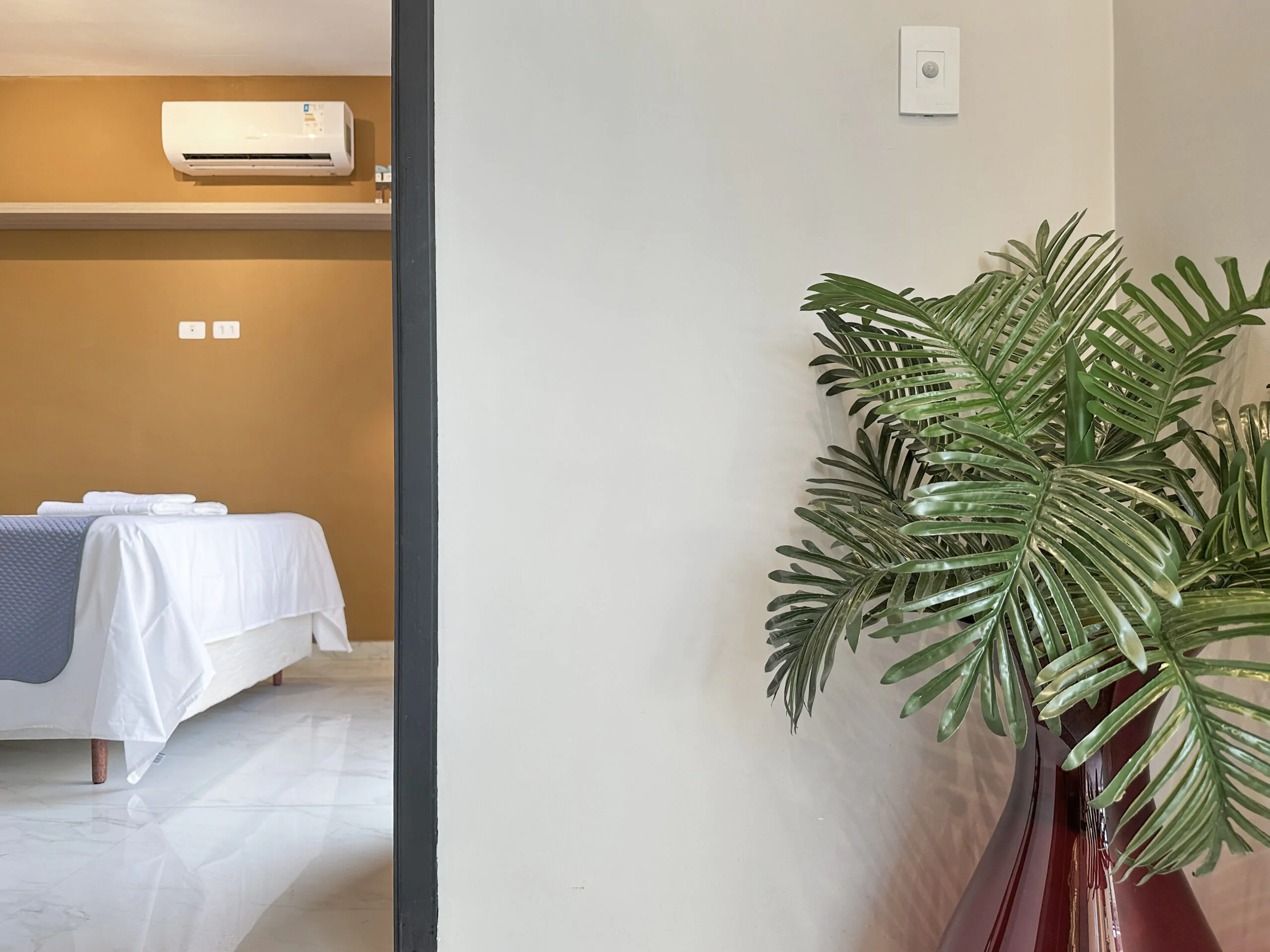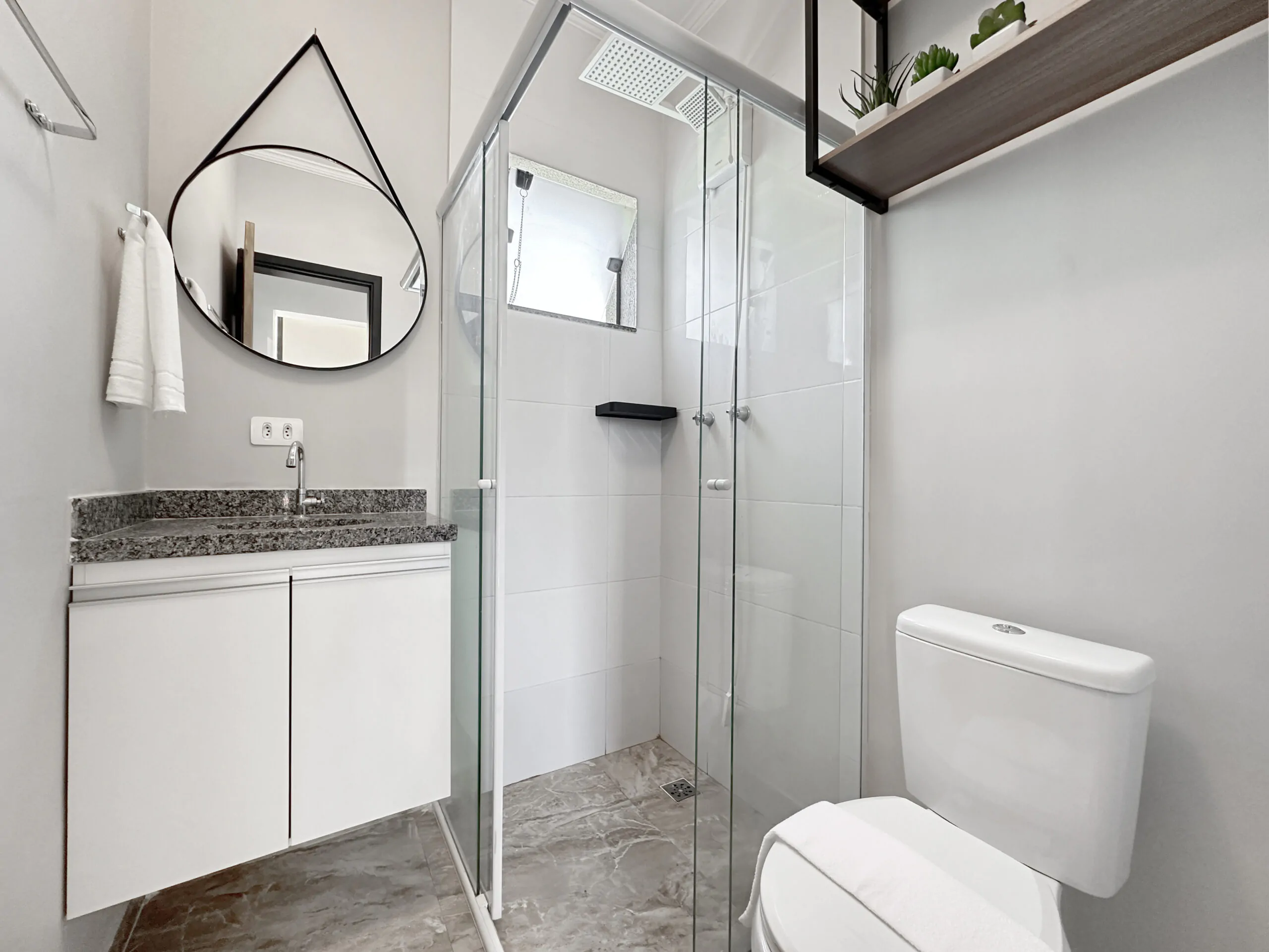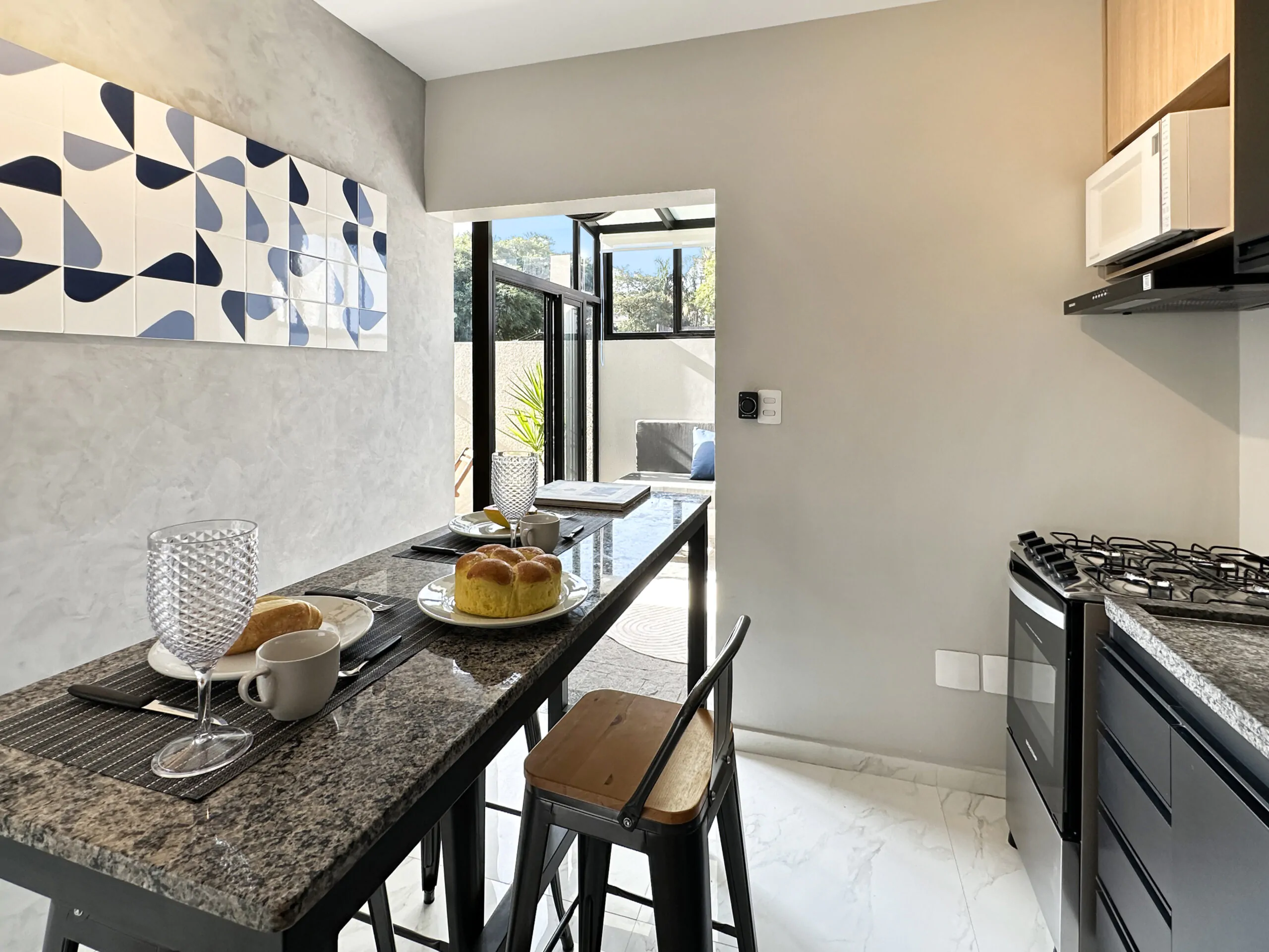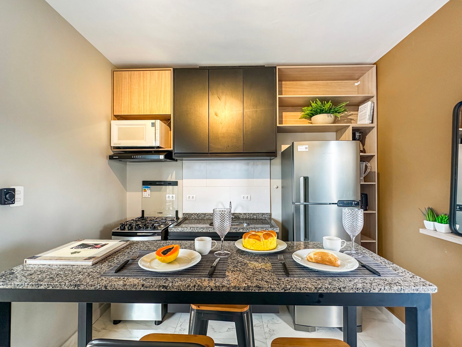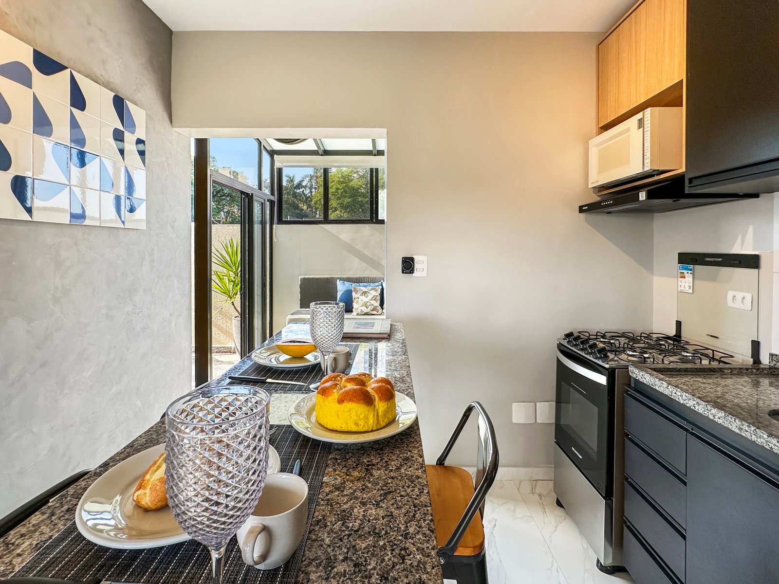 Originalmente concebido como um studio garden, este apartamento ganhou uma nova narrativa a partir do olhar estratégico para o Airbnb. Ao enxergar além da tipologia original, surgiu a ideia de transformar parte do garden em uma cobertura acolhedora, criando uma sala externa que amplia a experiência do morar — e do estar.